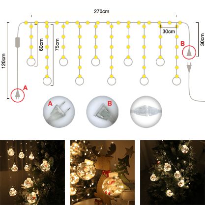 Cortina de ledes con 10 bolas de navidad.