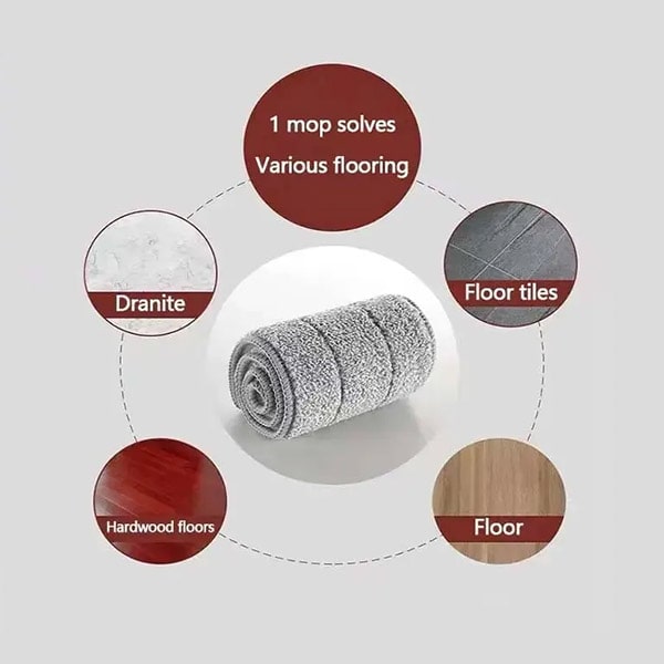 Desde madera dura a baldosas, vinilo o laminado, nuestra mopa plana autoenrollable se adapta a todas las superficies y ofrece unos resultados de limpieza excepcionales, sin dejar rastros ni residuos.
